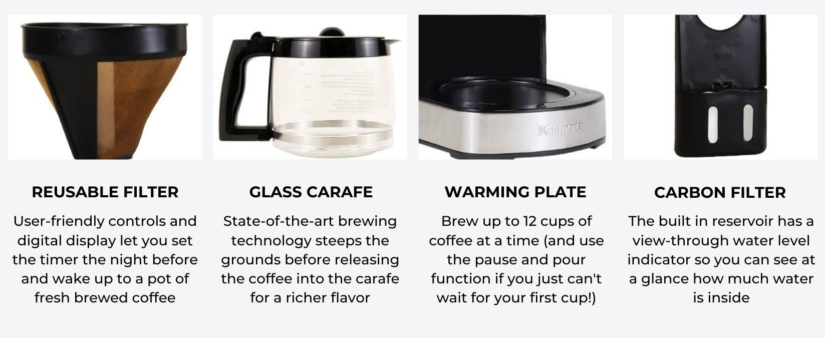 Kenmore coffee machines are a reliable choice for anyone who loves great coffee. Whether you enjoy a cup now and then or brew daily, Kenmore offers quality drip coffee makers and filter coffee machines that deliver rich, flavorful coffee every time.