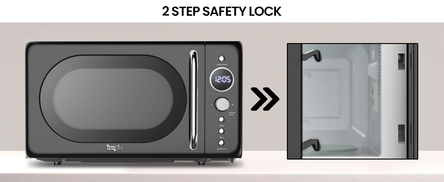 If you're looking for a microwave that stands out in your kitchen, the retro microwave oven is an excellent choice. It features a sleek black design that blends perfectly with any decor. But its appeal doesn't stop at looks because this appliance also offers modern conveniences like a digital LED display and quick start functions. So whether you want something stylish or practical, this microwave delivers both.